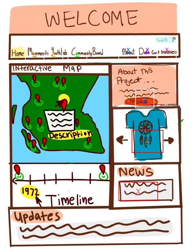 “The Movements Page organizes initiatives based on impact and land relationships, using filters inspired by platforms like Native Land Digital and IRSHDC. To organize our shirts in our ‘Movements page’ we utilize filters because it is important to see the shirts in context alongside being able to search one specific shirt.”
